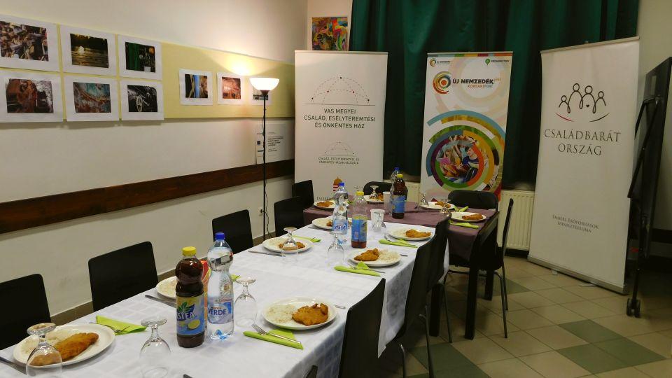 A rendezvény vacsorával zárult, ahol a rántott hús rizzsel történő elfogyasztásához Nagyné Marika szavai adtak iránymutatást a bekötött szemű fiataloknak. A desszertként tálalt Gundel-palacsinta a csokoládé szósszal pedig igazi kihívásnak bizonyult.